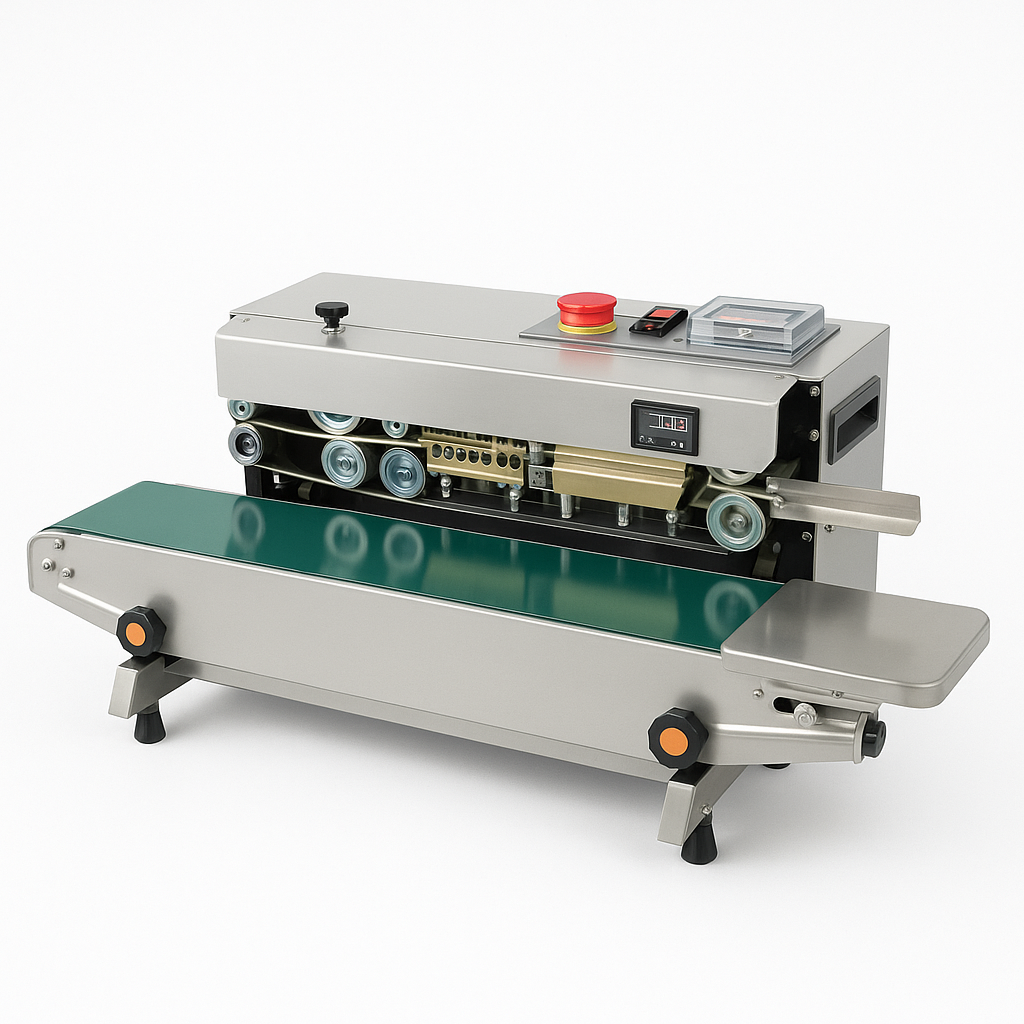 Product Overview: High-efficiency automatic continuous sealing machine ideal for sealing plastic, composite, and aluminum foil pouches. Temperature and conveyor speed adjustable for precise and consistent seals.